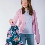 A rózsaszín pántok lehetővé teszik a könnyed viselést a háton, biztosítva a kényelmet mozgás közben.