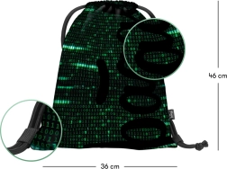 Modern zacskó digitális motívummal, ideális személyes tárgyak szállítására. Tartós anyagból készült és praktikus zsinóros összehúzóval a kényelmes hátizsákként való viseléshez.