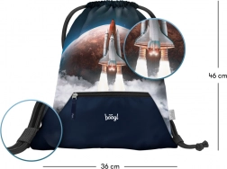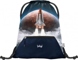 Cipőtáska Űrsikló erős, mosható anyagból készült, praktikus cipzáras zsebet és karabinert tartalmaz például az iskolatáskára való rögzítéshez. Kényelmesen hordozható a háton erős zsinórokkal.