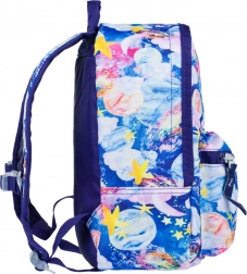 A kék alapon színes csillagok, bolygók és felhők minden gyermeket elbűvölnek, és egyedi megjelenést adnak a hátizsáknak, amely az óvodában és a kirándulásokon is kitűnik.