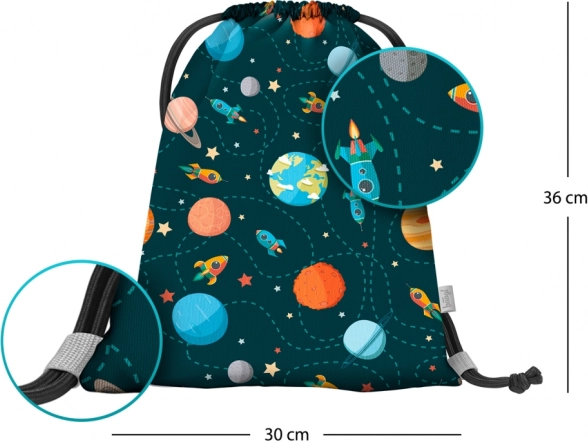 A Baagl Planéták ovis zsák remek segítőtárs az óvodába, edzésekre és kirándulásokra. Tartós és könnyen karbantartható anyagának köszönhetően bírja a mindennapi használatot, és gyorsan tisztítható. A vonzó űr-motívum szórakoztatja a gyerekeket, és megkönnyíti a zsák felismerését a többiek között.