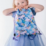 Az erős zsinórok egyben vállpántként is szolgálnak, így a gyerekek könnyedén hordhatják a zsákot, mint egy könnyű hátizsákot.