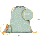 Stílusos zsák DINÓ motívummal, amely örömet szerez az óvodába és szakkörökre járó gyerekeknek. Tartós, könnyen tisztán tartható anyagának köszönhetően bírja a mindennapos használatot, és megóvja a váltócipőt, lábbelit és egyéb apróságokat.