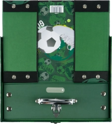 Tartós és egyben mutatós iskolai kis bőröndöt keres rajzeszközök, füzetek vagy apróságok hordásához? A BAAGL összecsukható iskolai kis bőrönd focis motívummal nemcsak kinézetével, hanem funkcionalitásával is meggyőz. Az erős laminált karton és a fémmel erősített sarkok hosszú élettartamot biztosítanak, a fém veretek stabilitást adnak, a klasszikus csat pedig biztonságban tartja a tartalmat.