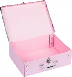 A fémmerevített sarkak védik a koffert a sérülésektől, a fém fogantyú masszív és kényelmes fogást biztosít, a megbízható csat pedig biztonságban tartja a tartalmat. Az erős, laminált papír hosszú élettartamot és alacsony tömeget garantál – ideális gyerekeknek iskolába és utazáshoz.