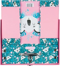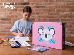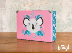 Az összecsukható iskolai bőrönd finom koala motívummal ideális rajzeszközökhöz, füzetekhez, játékokhoz és úti apróságokhoz. Az elegáns fém elemek és a fémmerevített sarkok hosszú élettartamot biztosítanak, míg a könnyű, erős laminált karton konstrukció megkönnyíti a mindennapi hordozást.
