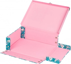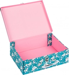 A fém fogantyú jól kézre áll, a klasszikus csat pedig megbízhatóan védi a tartalmat. Ideális rajzeszközökhöz, füzetekhez és gyerek kincsekhez.
