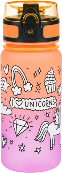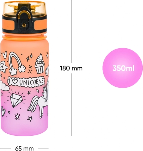 A 350 ml-es űrtartalom praktikus pánttal ideális iskolába, szakkörökre és kirándulásokra. A színátmenet és az egyszarvú minta a gyerekek kedvence.