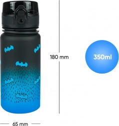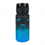 Stílusos tritán kulacs BATMAN motívummal, kék–fekete átmenettel, 350 ml űrtartalommal, zárható tetővel a szivárgás ellen, praktikus csuklópánttal és szűrővel gyümölcshöz vagy teához. BPA-mentes, biztonságos tritánból készült, ideális iskolába, sporthoz és kirándulásokra.