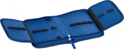 Két lehajtható fülű tolltartó minőségi cipzárral (töltet nélkül), valamint erős, mosható tornazsák karabinerrel és zsinóros összehúzással a könnyű hordhatóságért.
