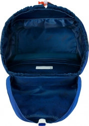 Az átgondolt elrendezés megkönnyíti a mindennapi rendszerezést – egyrekeszes belső dossziétartó zsebbel, elülső zseb az uzsonnának és oldalzsebek a kulacsnak rögzítő gumival. A szett része a klasszikus két lehajtható fülű tolltartó (töltet nélkül) minőségi cipzárral, valamint egy erős, mosható tornazsák karabinerrel a hátizsákra csíptetéshez és zsinóros összehúzással a háton való hordáshoz.