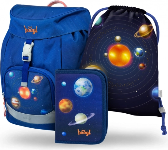 A BAAGL Airy Bolygók iskolai szett az első iskolai évekhez készült. A hátizsák mindössze 750 g tömegével, AIRFLOW ERGO rendszerű ergonomikus hátkiképzésével és teljesen állítható pántjaival, beleértve a mell- és derékpántot, egyenletes teherelosztást biztosít. A mágneses zárat az elsősök is könnyen kezelik, a fényvisszaverő elemek pedig nagyobb biztonságról gondoskodnak.