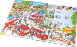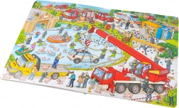 Ez a nagy képeskönyv elvezeti a kis olvasókat a tűzoltók akciódús világába. A gyerekek megláthatják, hogyan készül a kivonulás, hogyan működik a magas létra, a fecskendők és más felszerelések, valamint hogyan zajlik az emberek mentése égő házakból. Az illusztrációk részletgazdagok, és mesélésre ösztönöznek.