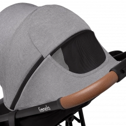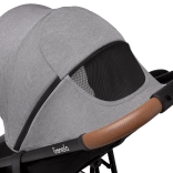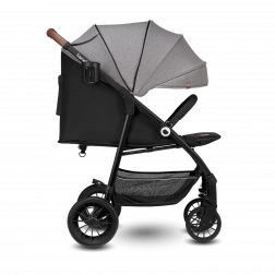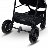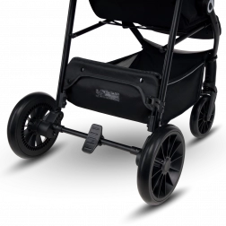 A babakocsi a szülőkre és a részletekre is gondol: gyors összecsukás reteszeléssel a biztonságos szállításhoz, nagyméretű bevásárlókosár, ökobőr tolókar a kényelmes fogásért, valamint praktikus kiegészítők, mint a szúnyogháló a lábtartóban elrejtve és a palacktartó. A fényvisszaverő elemek növelik a láthatóságot szürkületben, az 5 pontos öv két magassági beállítással pedig biztonságos rögzítést ad a növekvő gyermeknek.