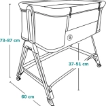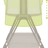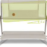 A légáteresztő hálós oldalfalak segítik a légcserét és a vizuális kontaktust, a huzat könnyen levehető és mosható a maximális higiénia érdekében. A 7 magassági szinttel a kiságy egyszerűen a saját ágy magasságához igazítható; megfázás vagy reflux esetén a matrac enyhe dőlésszögbe állítható a baba nagyobb kényelméért.
