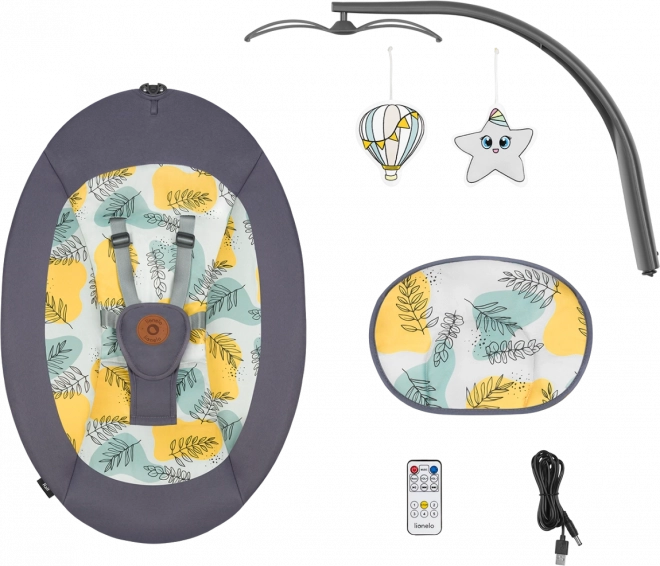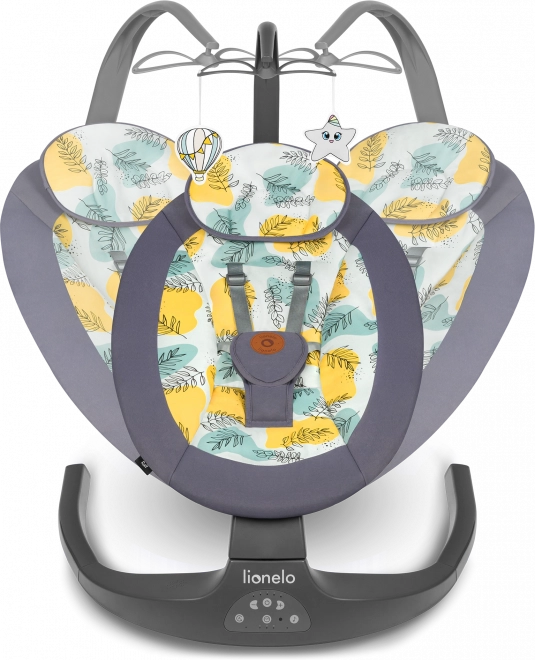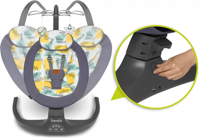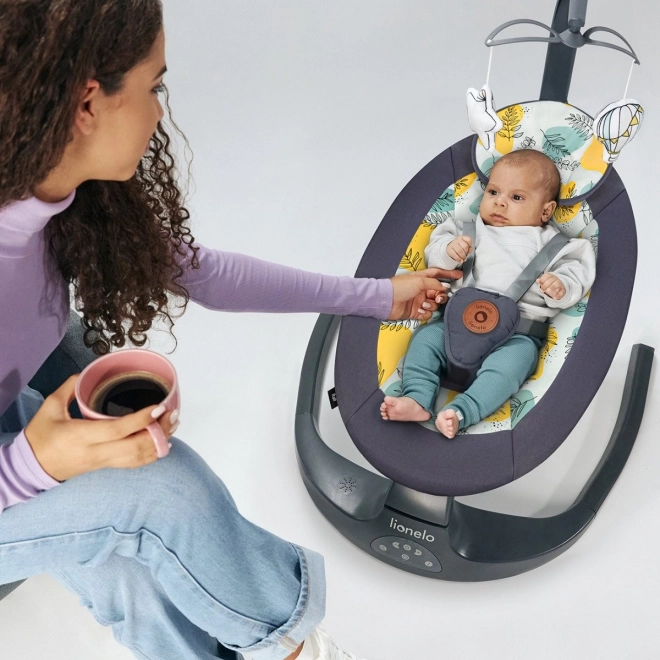 A praktikus 2 az 1-ben LIONELO Ralf pihenőszék és hinta finom jobb–bal ringatást, 2 háttámla-dőlésszöget, automatikus mozgásérzékelést és csendes motorműködést kínál. Az 5 hintázási sebesség, a 8/15/30 perces időzítő és a 12 dallam könnyedén megnyugtatja a babát. A biztonságról a 5 pontos övek gondoskodnak, a kényelemről pedig a puha párnácska és a könnyen mosható huzat. Tápellátás elemmel vagy USB-n keresztül is lehetséges.