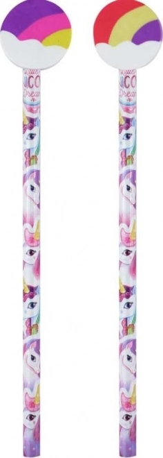 Ez a stílusos grafitceruza egyszarvú mintával ideális íráshoz és rajzoláshoz otthon, az iskolában vagy útközben. A végén lévő szivárványos radír megbízhatóan javítja az apró hibákat, míg a színes díszítés minden írásnak egyedi lendületet ad.