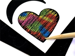 Szivárványos kaparólapok sablonokkal és fa tollal
