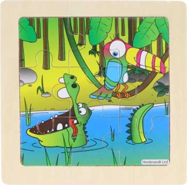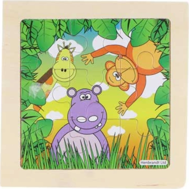 Aranyos fából készült kirakó dzsungel és majmok motívummal, amely örömet szerez a legkisebbeknek. A 9 masszív darabnak és a fa alaplapnak mart peremmel köszönhetően a kirakás könnyű, és közben fejleszti a finommotorikát, a logikát és a képzelőerőt.