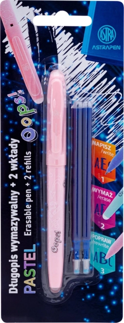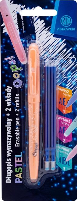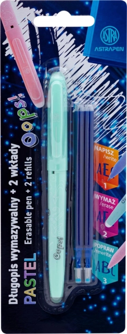 A praktikus, radírozható Astra Oops toll 0,6 mm-es finom vonalvastagsággal egyenletes írást és gyors javítást tesz lehetővé a speciális tintának köszönhetően, amely a toll mindkét végéről radírozható. Kínál ergonomikus fogást, csúszásgátló testet és cserélhető kék betétet. Ideális iskolába, irodába és otthonra.