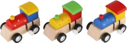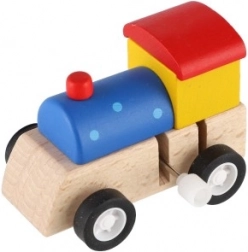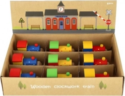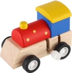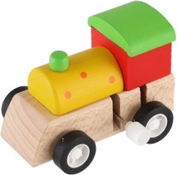 Aranyos fa mozdony kulcsos meghajtással, kb. 7 cm-es méretben, amely örömet szerez minden kis vonatkedvelőnek. Színes kivitel, egyszerű kezelhetőség és minőségi fából készült kidolgozás jellemzi, amely fejleszti a finommotorikát és a kreatív játékot. 3 éves kortól ajánlott.