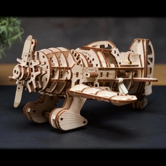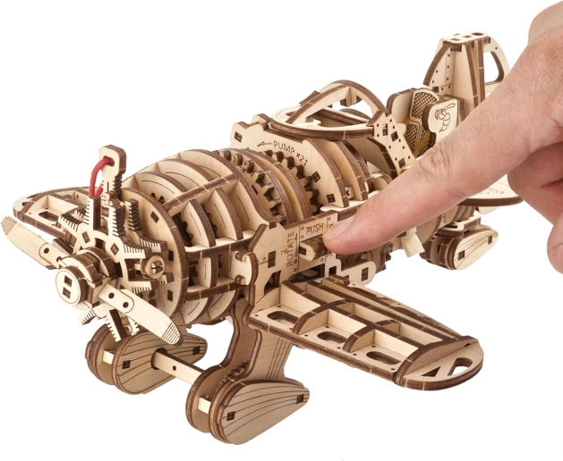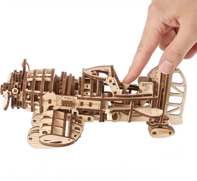 Ez a repülőgép modell ideális mindazok számára, akik csodálják a repülési úttörőket. A csepp alakú forma és a hátul elhelyezett kabin gyönyörűen mutat minden polcon. Felhúzható hajtással van ellátva, amely hosszú szórakoztató perceket biztosít. A motor stílusosan több húzással feszíthető az ebbe tartozó zsinórral.