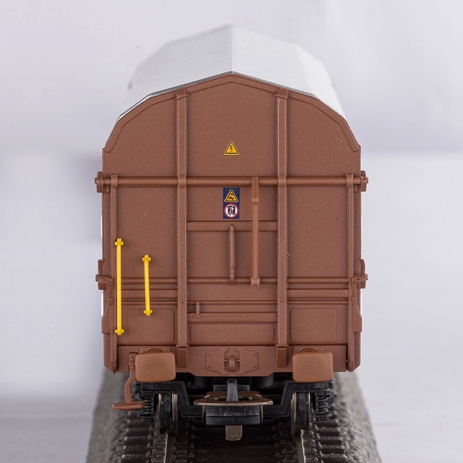 Ez a két vagonból álló készlet gondosan tervezett részletekkel, beleértve a kidolgozott alvázöntvényeket és a homlokfalakat ponyvafogó mechanizmussal. A vagonok fedelei levehetők, ami feltárja a tagolt belső teret ágyakkal a rakomány számára - a csomag része egy acéltekercs mintadarab. A vagonok vonzó, színkontrasztos részletekkel vannak ellátva, mint például fogantyúk és rögzítők, továbbá kiváló minőségű festéssel és éles nyomtatással rendelkeznek, amely a legapróbb részleteket is megörökíti.