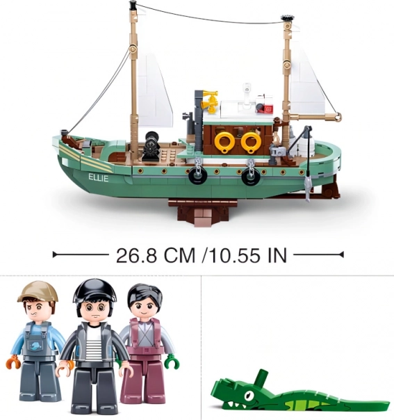 A készlet három figurával, nyomtatott útmutatóval és matricákkal érkezik a hajód személyre szabásához. Az összeállított Ellie hajó tiszteletet parancsoló 27 cm magas, és készen áll bármilyen kalandos útra. Az ABS műanyag kiváló minősége miatt a készlet tartós és hosszú élettartamú. Továbbá kompatibilis más márkákkal, mint a LEGO, a Mega Bloks és mások.
