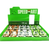 A modell szórakoztató játékra és stílusos dekorációként is készült. A masszív fém karosszéria, a részletes nyomat és a markáns hátsó szárny kiemeli a versenykaraktert. Csak húzd fel, engedd el, és nézd, ahogy elindul.
