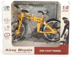 Fedezze fel a valósághű, 1:8 arányú gyűjtői kerékpármodellt, amely a gyerekeket és a felnőtteket egyaránt elbűvöli. Fém kivitelének, részletgazdag vázának és a puha gumiból készült abroncsoknak köszönhetően olyan benyomást kelt, mint egy igazi hegyikerékpár. Remek választás a kerékpározás iránti szeretet erősítéséhez, a képzelet fejlesztéséhez és stílusos szobadekorációként is.