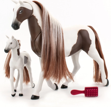 Ez a készlet lehetőséget nyújt a gyerekeknek, hogy felfedezzék a csikó és anyja közötti szoros kapcsolat szépségét. A csikó mindig szeretettel ad puszit a kancának, amikor odahajol. A csomag tartalma: