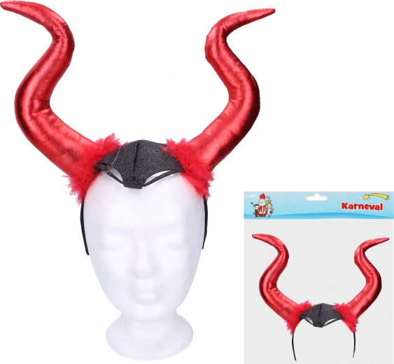 Ez a fejpánt ördögi szarvakkal egyedi megjelenést kölcsönöz az ördög jelmezednek. Csillogó textil anyagból készült tollas részletekkel, ideális karneváli ünnepségekre.