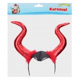 Vörös-fekete ördög szarvak a fejpántra rögzítve garantálják, hogy a figyelem középpontjába kerülsz bármely karneválon. A design ördögi témájú és tökéletesen illik a jelmezhez.