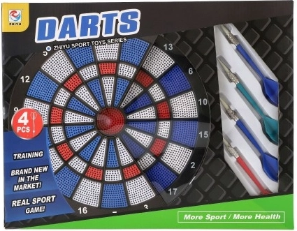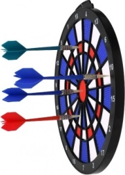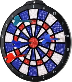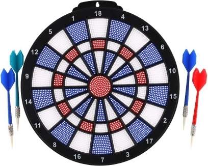 Élvezze a klasszikus darts szórakozást biztonságos kivitelben gyerekek és felnőttek számára egyaránt. Ez a műanyag céltábla színesen tagolt mezőkkel és jól olvasható szektorszámozással remekül ötvözi a játékot és a pontossági edzést. A négy könnyű, cserélhető műanyag hegyű nyíl kíméli a táblát és a környezetet.