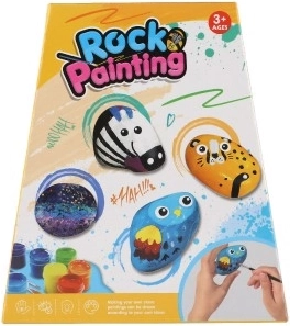 Praktikus csomagolás kavicsokkal, festékekkel és két ecsettel, így a kibontás után azonnal kezdődhet az alkotás. Otthonra és útra egyaránt ideális.