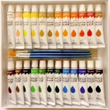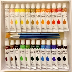 Fedezze fel a sokoldalú akrilfesték-készletet, amely a kezdőket és a haladó alkotókat egyaránt örömmel tölti el. 24 élénk árnyalat praktikus, 12 ml-es tubusokban széles palettát kínál festéshez, dekoráláshoz és kreatív DIY projektekhez. A csomag része 3 ecset a kényelmes felhordáshoz és a részletmunkához.
