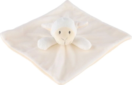 Puha, kellemes tapintású plüss alvókendő kisgyermekeknek, elalváshoz a kiságyba. A bárány feje csörög.