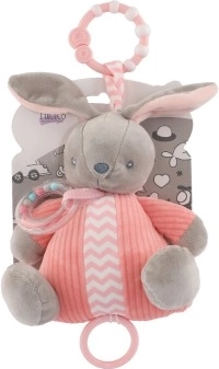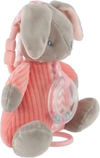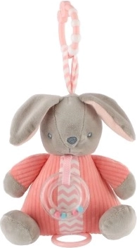 Ez a selymesen puha plüss nyuszi a baba első kedvenc barátja lesz. Felhúzás után lágy dallamot játszik körülbelül 1 perc 20 másodpercig, amely segít megnyugtatni a gyermeket és békés hangulatot teremt alváshoz vagy pihenéshez. Az integrált csörgő támogatja a hallás és a koordináció fejlődését.
