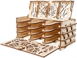 Változtasd a kártyagyűjteményed rendszerezését szórakoztató élménnyé. Az UGEARS fa kazetta ötvözi a funkcionális designt, a mechanikai eleganciát és a kézműves kidolgozást. A zár egyszerű elforgatásával a kazetta kinyílik, és finoman egy áttekinthető „lépcsővé” hajlik ki, amely lehetővé teszi a kártyák gyors megtalálását és válogatását.