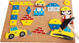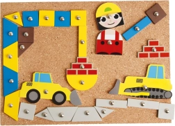 A kalapácsjáték készlet építkezési motívumokkal számtalan lehetőséget kínál építkezési jelenetek alkotására, és fejleszti a gyermekek fantáziáját.