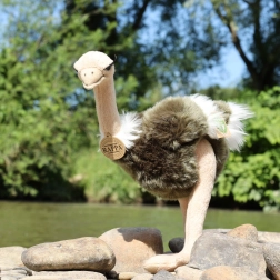 A 32 cm magas, aranyos plüss strucc minőségi, puha szőrméből készült, töltete pedig újrahasznosított PET-palackokból származik. A puha teste, a hosszú lábak és a realista részletek ideálissá teszik ölelgetéshez, és környezetbarát választás a felelős szülőknek.