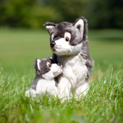 Aranyos plüss farkas kölyökkel, 27 cm magas, amely örömet szerez a gyerekeknek és a gyűjtőknek. Kínál puha, minőségi plüsst, élethű részleteket és praktikus kialakítást, melynél a kölyök könnyen leválasztható. Az újrahasznosított PET-palackokból készült töltetnek köszönhetően a játék környezetbarát, és egyben 0+ kortól biztonságos.