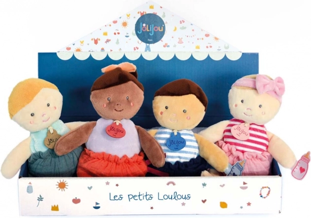 A bájos, puha Doudou Jolijou baba 18 cm-es magassággal ideális első játék a babáknak. Rugalmas, puha testtel, hímzett, biztonságos részletekkel és finom, az érzékeny bőrhöz kíméletes anyagokkal készül. Kompakt méretének köszönhetően a gyermek könnyen megfogja és ölelgeti. Tartozik hozzá egy kis kézbe illő cumisüveg, amely segíti a finommotorika fejlődését.
