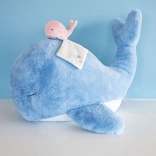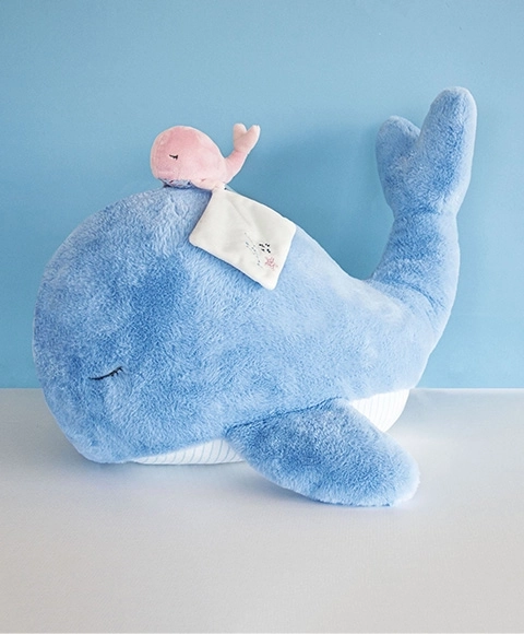 Ez a pihe-puha kék bálna biztonságot és nyugalmat ad a gyerekeknek. Kellemesen telt, remekül lehet vele összebújni, és kedves ajándék újszülötteknek és nagyobb gyerekeknek egyaránt. Finom kialakítása megmozgatja a fantáziát, és a gondtalan, vízparti, napfényes pillanatokat idézi.