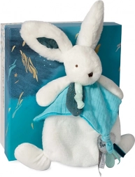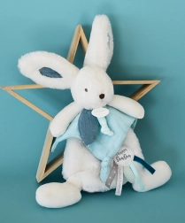 Ez a Doudou ajándékszett egy selymes plüss nyuszit és egy puha rongyit tartalmaz, amely örömet szerez a babának és a szülőknek egyaránt. A finom szalagokkal és modern kék színnel készült stílusos kivitel szép dísze a gyerekszobának, és kedvenc ölelgetnivaló játékká válik.