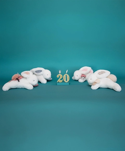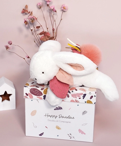 Bájos és puha plüss nyuszi prémium anyagból, amely örömet szerez a babáknak és a nagyobb gyerekeknek is. Ölelgetős játékként, dekorációként és kényelmes párnácskaként is szolgál. Kínál extra puha anyagot, stílusos sötétrózsaszín pompon díszt és finom sálat a nyak körül. Újszülött kortól ajánlott, megfelel a CE európai szabványoknak, könnyű karbantartás 30 °C-on történő mosással.