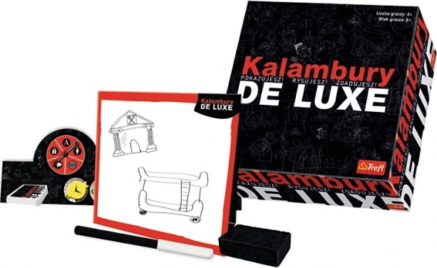 Élvezze a Kalambury de Luxe játékot, amely megnevetteti és szórakoztatja Önt és barátait! Ez a változat több mint 800 kifejezést, homokórát és különleges kalamburatort tartalmaz a kategóriák húzásához, a kifejezés bemutatásának módjához és a pontok összesítéséhez.