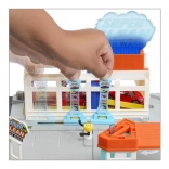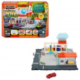 A Matchbox Action Drivers Autómosó víz nélkül nyújt valósághű élményt a gyerekeknek. Hajts be a bejáraton, aktiváld a forgó mosóhengereket, állj meg a viaszozó és polírozó állomáson, ahol a dolgozó figura automatikusan bekapcsol, majd térj be a boltba egy útravaló nassolnivalóért. Végül a mozgatható porszívócsővel tisztítsd ki az utasteret.