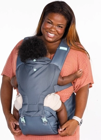 Átgondolt kialakítása a párnázott pántokkal, a széles derékövvel és az állítható fejtámasszal a szülő és a gyermek kényelmét szolgálja. A praktikus oldalzseb kéznél tartja az apróságokat, használat után pedig a hordozó könnyen a fronton viselhető, kompakt táskává hajtható.