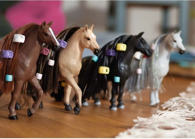 Színes csatokkal, gyöngyökkel és fésűvel rendelkezik, amelyek különféle styling lehetőségeket és lófrizurák kísérletezését teszik lehetővé.
